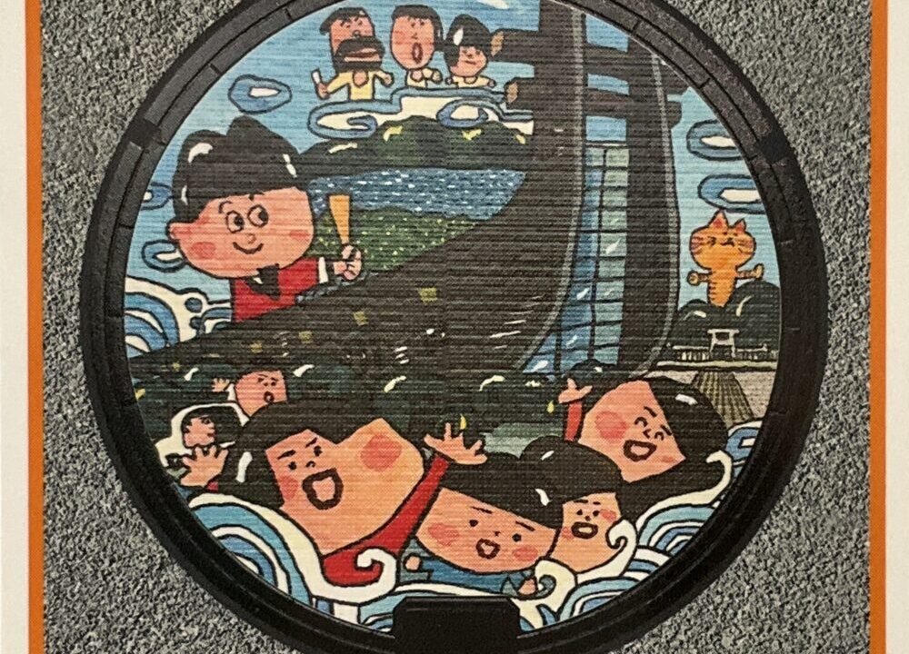 藤井寺市出身の絵本作家長谷川義史さんが描いたマンホールです。